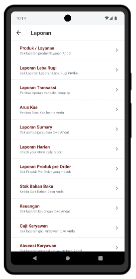 Laporan laba rugi, arus kas, dan laporan keuangan lainnya yang terintegrasi dengan data penjualan dan pembelian.